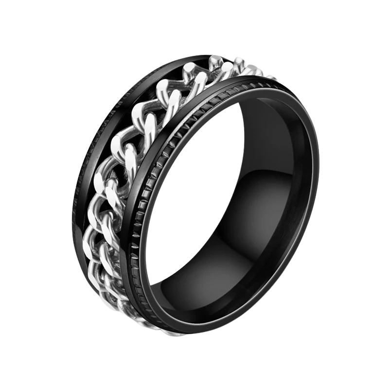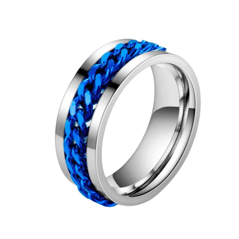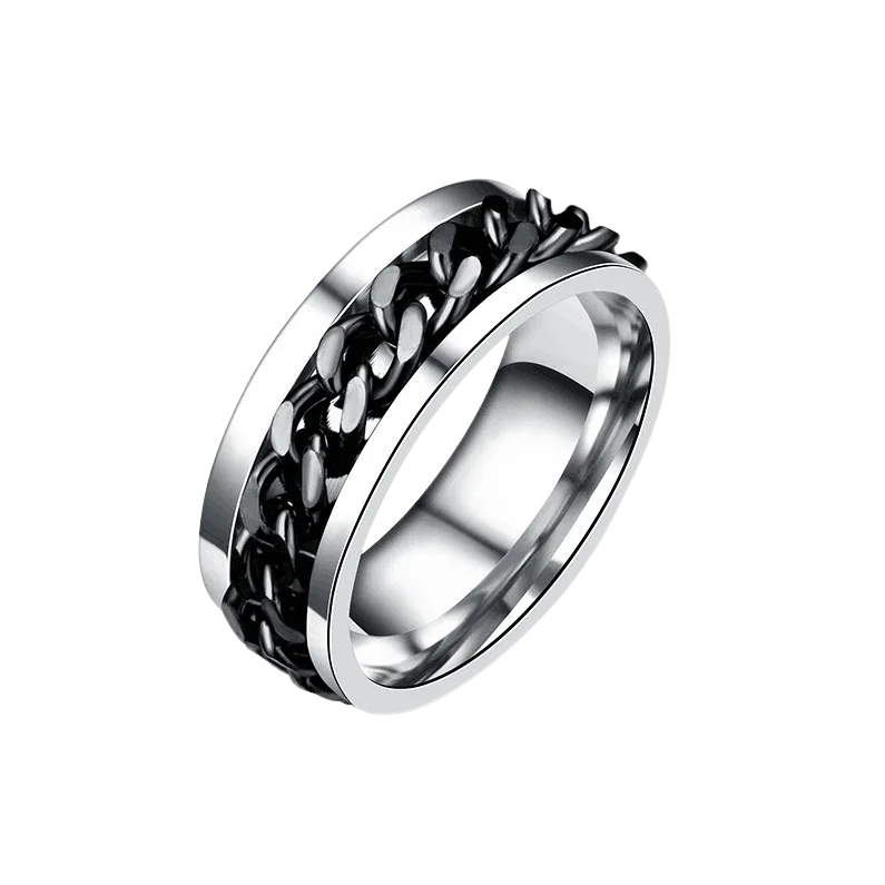 Sa chaîne centrale tournante offre un exutoire discret et apaisant pour vos doigts. C'est un geste simple qui détourne l'attention et calme l'esprit, partout et à tout moment.